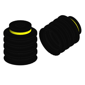 La costruzione a spessore differenziato coniuga un labbro estremamente morbido con un soffietto robusto che, grazie anche alle cinture di rinforzo, è in grado di resistere all’implosione anche quando sono impiegati generatori di vuoto di grande potenza.