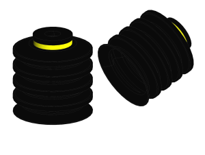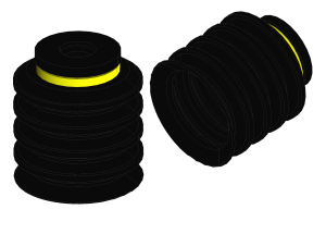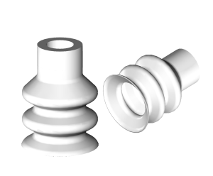 In tale caso, un soffietto più robusto nella parte superiore conferisce stabilità, mentre un labbro sottile può accentuare un movimento di collasso radiale utile per ‘aggrapparsi’ alla superfice in presa simulando il comportamento delle dita di una mano. Per queste ragioni le ventose a soffietto multiplo sono le più indicate per la manipolazione di oggetti cedevoli come i sacchetti flowpack e doypack.